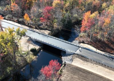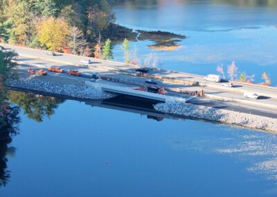 This project replaces the US 4 bridge over the Blackwater River and reconstructs 1100 ft of US Route 4. This rapid bridge construction includes precast concrete abutments that sit on driven H-Pile and precast concrete girders. Steel sheet pile was also installed along the river.